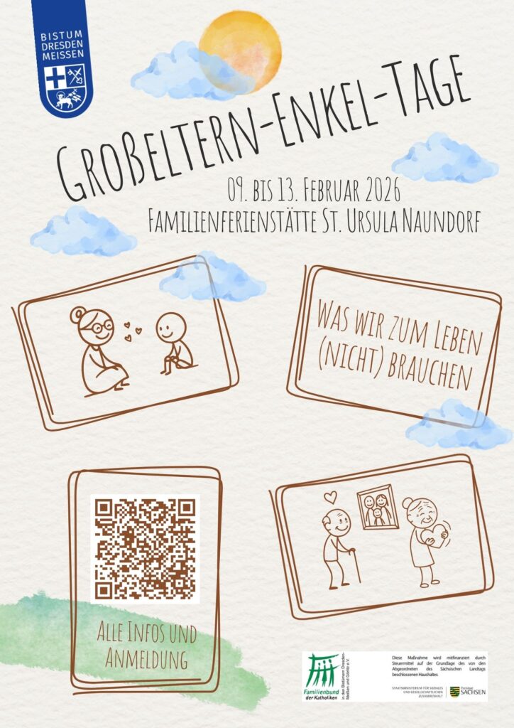 Die Großeltern-Enkel-Tage laden ein, auf verschiedene Weise dieser Frage nachzugehen. Wir wollen uns Miteinander Zeit nehmen zum Erzählen, Spielen, Beten, Bewegen, Musizieren, gemeinsame Mahlzeiten, Kreativ-sein, Entdecken und für so manches mehr.